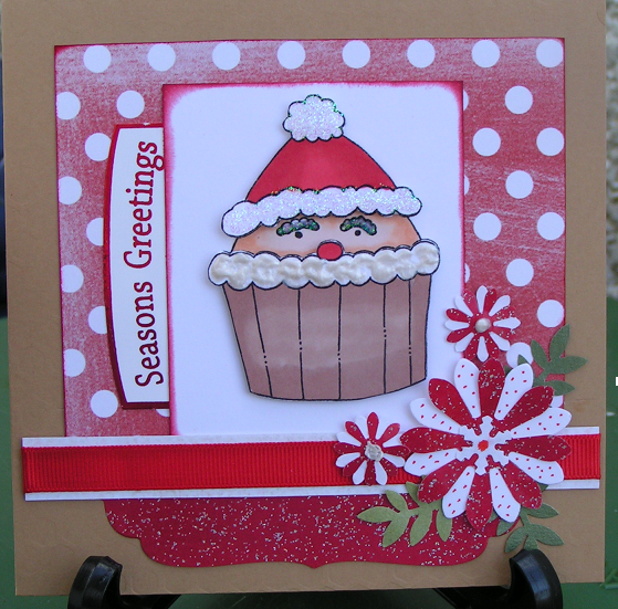 FLOWERS and GLITTER. Easy or what. For my card I used the Santa cupcake, coloured with copics and promarkers. The paper is a digi from Summerdreggs and the glittery paper is from my stash. Used my nestabilities to cut the shape. Punched out flowers in glitter paper and white paper and added spots. Leaves where cut from a small punch. I 3d the cupcake and added some 3 dimensional paint and stickles. Pop over and see all the digis up for offer and have a look at the lovely inspiration from my team mates.