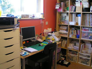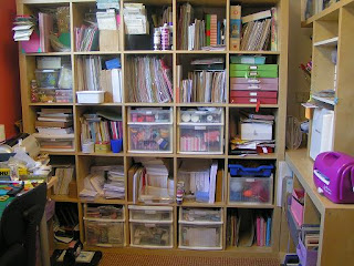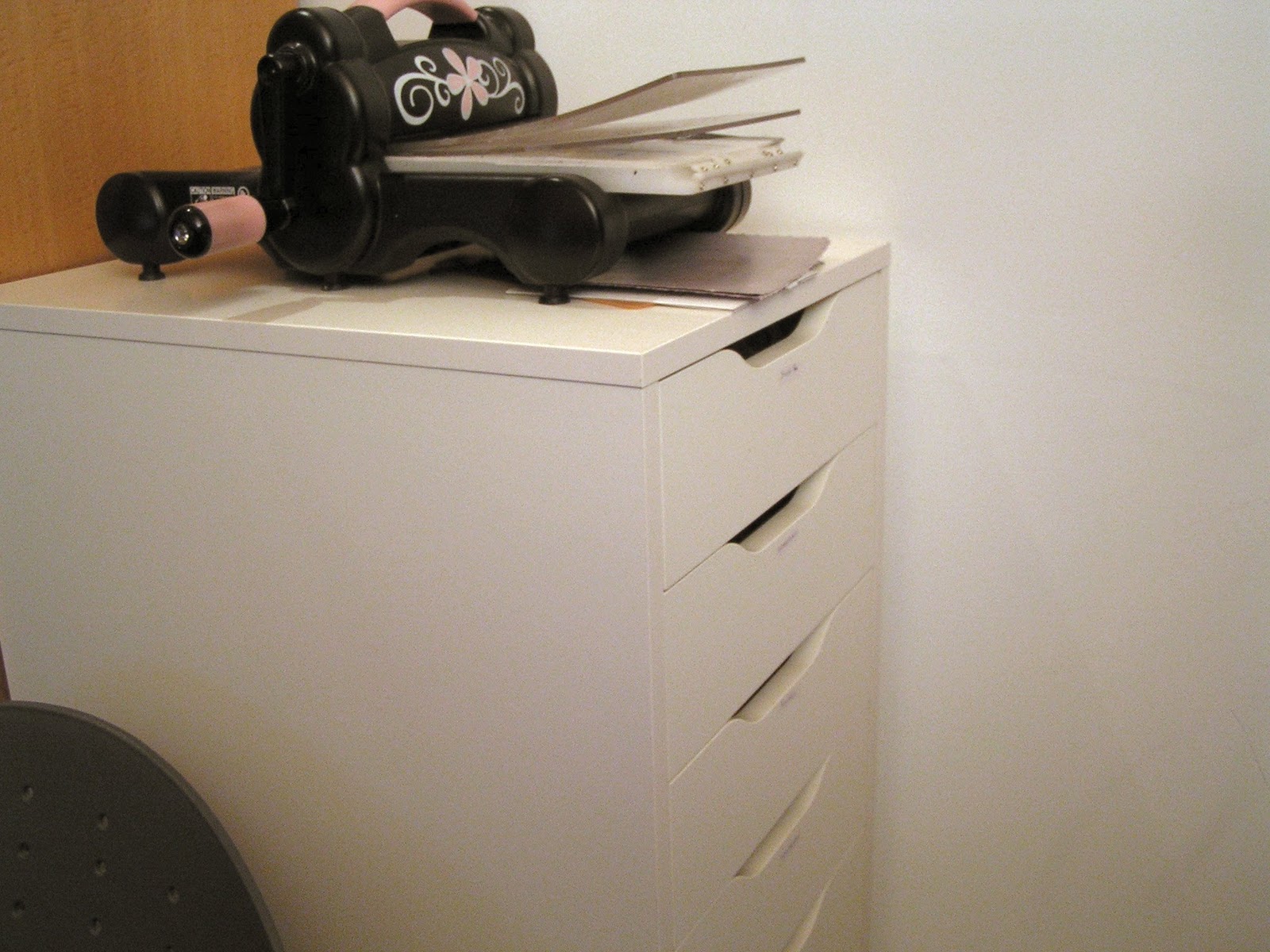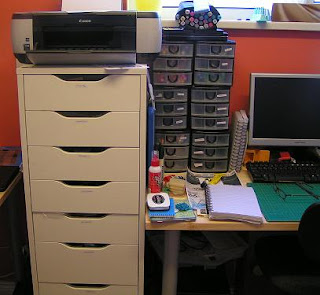 This is the unit I was working on today. I can't get a good pic as I have it stuck right beside my desk and can't get a camera angle. It is about 4ft tall and has 9 drawers. It is holding my inks, ink pads, powders, mirri card, tools, embossing folders, nesties, punches etc etc.