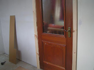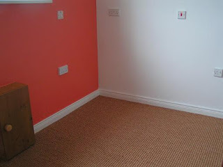 Hubby hard at work levelling the floor for the carpet to be laid.