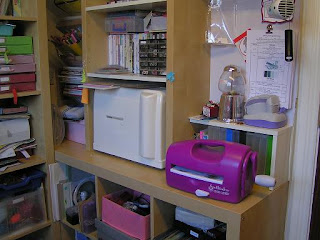 In the corner you can just about make out my cricut machine, it also has nice easy access to the plug. Below is house a lot of my stamps but I plan to get these into cd cases and store in cd racks on the wall space above. All in all I am very pleased. Its a nice airy room with lots of natural light and its also cosy and not secluded from the rest of the family.
